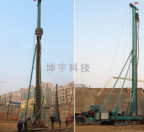 徐州坤宇機械科技有限公司經(jīng)過市場考察,針對不同的施工要求,開發(fā)了全新多功能液壓步履式螺旋鉆機。 該機采用多用滑輪架及通用滑道,并配置多功能液控卷揚機,根據(jù)配置不同的工作裝置,可完成以下樁機礎(chǔ)施工: